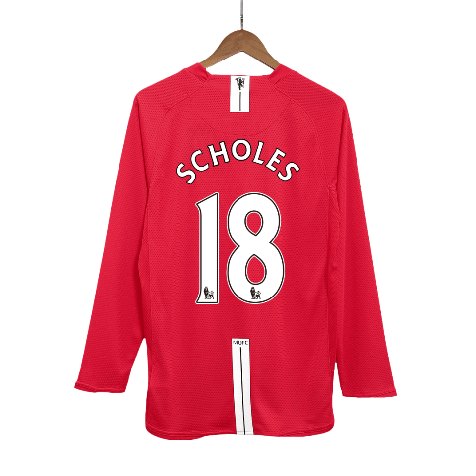 Vintage Soccer Jersey SCHOLES #18 Manchester United Home Long Sleeve 2007/08