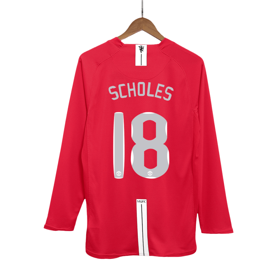 Vintage Soccer Jersey SCHOLES #18 Manchester United Home Long Sleeve 2007/08 – UCL Final