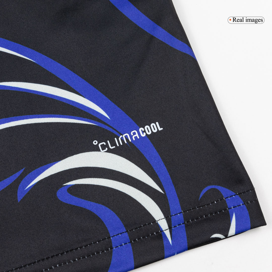 TheArgentina Away Soccer Jersey World Cup 2026redefines tradition with apredominantly black base, accented bywhite logosandsky blue details. This strikingArgentina jerseyfeatures avibrant, artistic pattern inspired by paintings, symbolizing creativity and national passion. It also proudly includes theclassic Trefoil logo, making it the first modern-eraArgentina football jerseyto bring back this legendary emblem.