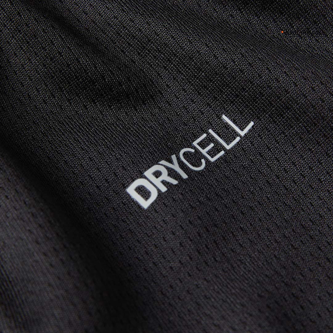 100% polyester and keeps you feeling dry.